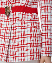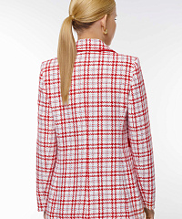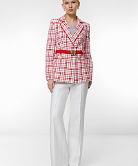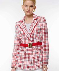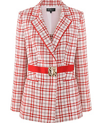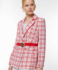 Элегантный жакет с привлекательным клетчатым принтом. Яркий пояс с оригинальной пряжкой подчеркивает талию и придает современный вид. Идеально подходит для офисных образов и вечерних выходов.
