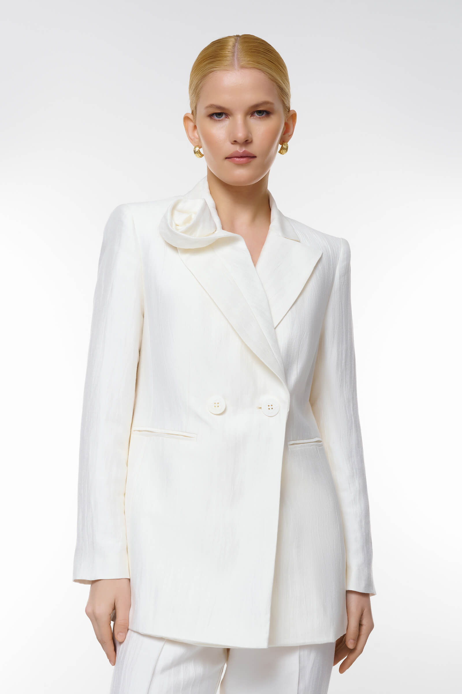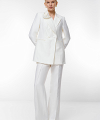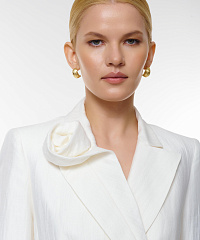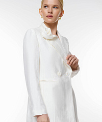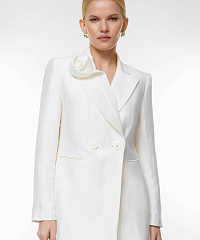 Пиджак с объемным декором — элегантное решение для современного гардероба. Модная двойная застежка на пуговицы и оригинальный объемный элемент на воротнике делают эту модель изюминкой любых нарядов. Пиджак идеально подходит как для деловых встреч, так и для вечерних выходов.