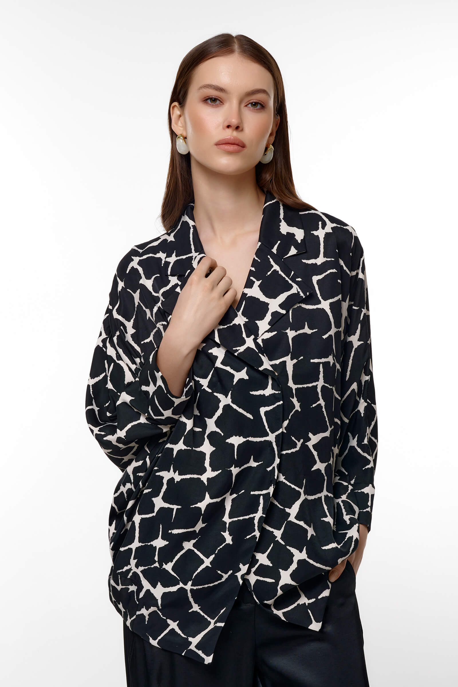 Жакет с рукавами "летучая мышь" с абстрактным принтом