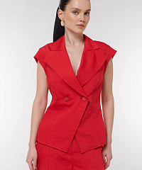 Откройте для себя стильный жилет ярко-красного цвета, который идеально дополнит ваш гардероб. Этот приталенный жилет, выполненный с добавлением льна, обеспечит вам комфорт и воздухопроницаемость в любое время года. Широкие лацканы и изящные пуговицы придают модели элегантный вид, который легко комбинировать с различными нарядами. Подходит как для офисного стиля, так и для вечерних выходов. Добавьте яркий акцент в ваш образ с этим шикарным жилетом!